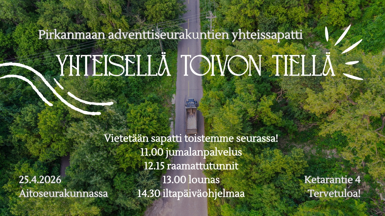 Nettiraamattutunti klo 10. Linkki. Jumalanpalvelus klo 11. Linkki. Raamattutunnit eri ikäisille klo 12.15. Nyyttärit klo 13.